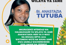 Mkurugenzi Mtendaji wa Halmashauri ya Wilaya ya Same Bi.Annastazia Tutuba anawatakia watumishi wote na wana Same kwa ujumla heri ya X-Mass na Mwaka Mpya 2022 washerehekee kwa amani na Upendo huku waki...