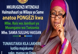 Mkurugenzi Mtendaji wa Halmashauri ya Wilaya ya Same Bi.Anastazia Tutuba pamoja na menejimenti ya Halmashauri ya Wilaya ya Same wanatoa pongezi za dhati kwa Rais wa awamu ya sita Mhe. Samia Suluhu Has...