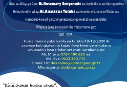 Salamu za heri ya mwaka mpya kutoka kwa Mhe.Rosemary Staki Senyamule Mkuu wa Wilaya ya Same ...