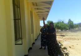 Mkurugenzi Mtendaji wa Halmashauri ya Wilaya ya Same Bi.Anna-Claire Shija akagua mradi wa ujenzi wa vyumba vitatu vya madarasa,bweni na vyoo katika shule ya sekondari Irikiponi kata ya Ruvu ambapo ame...
